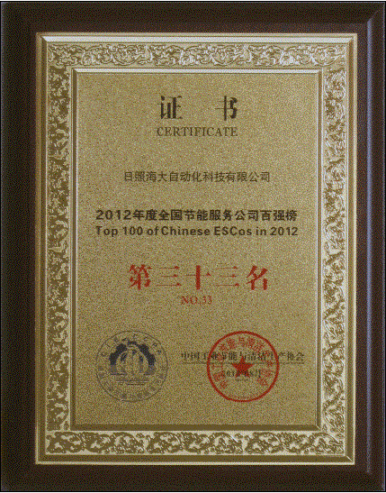 2012年全國節(jié)能服務(wù)公司百強榜我公司榮獲第三十三名