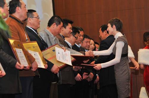 ??由湖北三環(huán)發(fā)展股份有限公司實(shí)施的江西萬年青水泥股份有限公司風(fēng)機(jī)變頻項(xiàng)目等15個項(xiàng)目獲得“2010中國電機(jī)系統(tǒng)節(jié)能優(yōu)秀項(xiàng)目”,駐華代表處項(xiàng)目官員Virginie和中國標(biāo)準(zhǔn)化研究院院長王忠敏為獲獎企業(yè)頒獎。